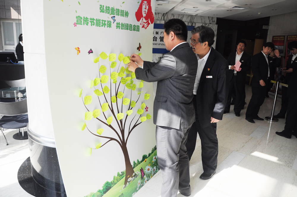 為大力弘揚雷鋒精神,普及綠色環(huán)保理念,踐行企業(yè)社會責任,音像資料館項目部根據(jù)項目的特性,在3月5日開展了“學雷鋒”環(huán)保宣傳活動?;顒油ㄟ^發(fā)放節(jié)能環(huán)保倡議書和向各入駐單位介紹音像資料館節(jié)能環(huán)保措施、目前水電消耗現(xiàn)狀來推廣綠色環(huán)保個人行為,倡導大家積極響應國家提倡建設資源節(jié)約型社會的主旋律,共同大力推進公共機構節(jié)能,努力創(chuàng)建節(jié)約型建筑。同時,向大家廣泛征集綠色環(huán)保宣言及簽名,大家紛紛將自己的環(huán)保宣言和“綠色祝愿”寫在樹葉形狀的便簽上,粘貼在活動背景板中一棵大樹的樹枝上,活動最終呈現(xiàn)出一棵枝葉茂盛、綠意盎然的大樹。通過這些宣傳倡導活動,“綠色環(huán)保,你我共行;雷鋒精神,你我共創(chuàng)”的理念深入人心。