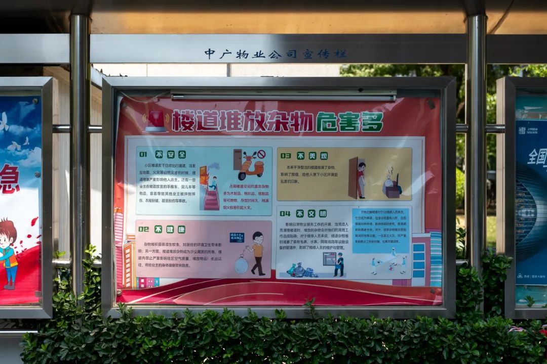在清理前,為盡最大努力爭取業(yè)主的理解與支持,并主動配合清理工作。各項目根據(jù)《中華人民共和國消防法》相關(guān)條例,采用入戶發(fā)放《告知函》、張貼海報等方式開展宣傳動員,并耐心和業(yè)主解釋相關(guān)政策法規(guī),讓業(yè)主認識到樓道堆物的危害性和保持樓道暢通的重要性。