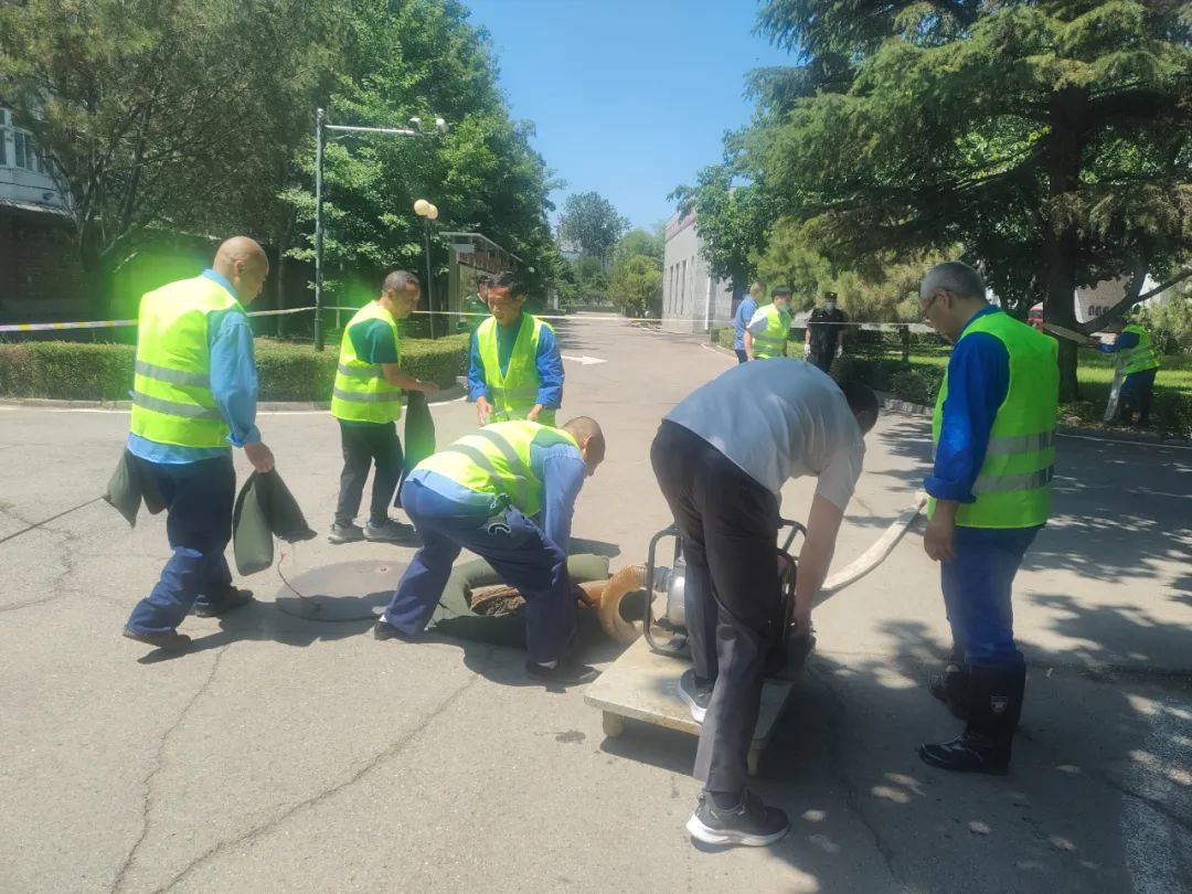 6月13日上午,基地組織開展防汛預(yù)案演練,學(xué)院領(lǐng)導(dǎo)現(xiàn)場對演練進(jìn)行觀摩指導(dǎo)。項目部組織應(yīng)急小分隊人員準(zhǔn)時到達(dá)演練地點,并按照預(yù)案關(guān)鍵環(huán)節(jié)、節(jié)點、流程等圓滿完成演練。演練活動由總務(wù)處副處長馮宇峰主持。演練結(jié)束后,學(xué)院蒙院長對演練效果進(jìn)行了總結(jié)點評。同時,對疫情三年以來項目部的辛勤付出表示感謝,希望今后大家一如既往,各司其職,更好的做好本職工作。通過防汛演練,檢驗了防汛預(yù)案的適宜性,設(shè)備器材物資的完好性,及員工應(yīng)對汛情快速反應(yīng)和規(guī)范安全操作及應(yīng)急處置能力。