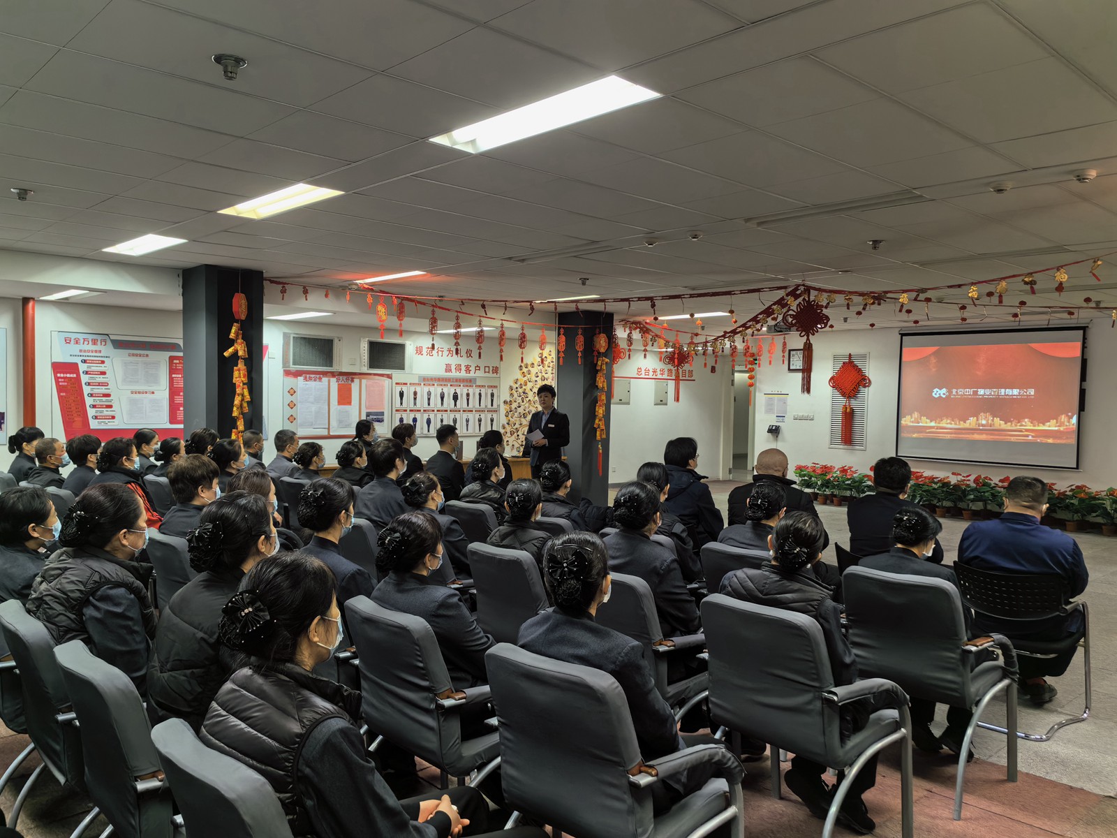 2024年2月8日,北京中廣物業(yè)管理有限公司召開2023年度總結(jié)表彰大會(huì)。此次大會(huì),通過音像資料館主會(huì)場及各項(xiàng)目分會(huì)場觀看總結(jié)表彰大會(huì)視頻的方式進(jìn)行,公司各項(xiàng)目根據(jù)實(shí)際工作情況,通過電腦、投影、手機(jī)等視頻設(shè)備,積極有序組織全體員工同步觀看。
