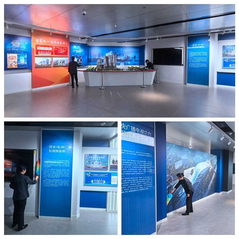 北京中廣物業(yè)管理有限公司總臺光華路項目部作為臺史館和總臺重點(diǎn)項目展的環(huán)境服務(wù)方,秉承“高標(biāo)準(zhǔn)、重細(xì)節(jié)、強(qiáng)管理、嚴(yán)落實、提形象、塑品牌”的管理方針,根據(jù)展館特色,結(jié)合公司質(zhì)量、環(huán)境、職業(yè)健康安全管理體系,定制化打造場館服務(wù)標(biāo)準(zhǔn)。項目部采取“隱性服務(wù)”,在大型參觀活動前和結(jié)束后,科學(xué)合理的安排環(huán)境作業(yè)時間,調(diào)整固定的作業(yè)頻次,管理人員隨時跟蹤操作現(xiàn)場,針對每一次的保潔情況進(jìn)行工作后的匯總和分析,做到事事有落實,處處有服務(wù),以專業(yè)、規(guī)范、嚴(yán)謹(jǐn)、細(xì)致的態(tài)度,為場館環(huán)境、館內(nèi)展陳、參觀人員提供強(qiáng)有力的服務(wù)保障。