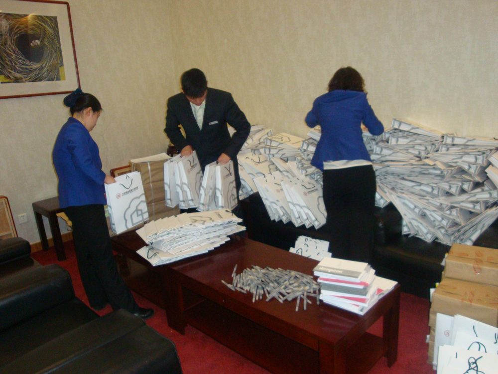 會(huì)議進(jìn)行前,客戶服務(wù)部人員提前把報(bào)告廳200多塊座椅背板進(jìn)行了重新安裝,并在會(huì)議開始前一周對(duì)于4天會(huì)議的就餐問題與無線局餐廳和中央電視臺(tái)后勤服務(wù)部門進(jìn)行了有效溝通,保證了學(xué)員就餐。因本次北京市物協(xié)同時(shí)開辦6個(gè)項(xiàng)目負(fù)責(zé)人培訓(xùn)班,報(bào)名參加培訓(xùn)的人員多,客服辦公室人員放棄了午休和周末,提前協(xié)助物協(xié)的教師做了大量工作:把學(xué)習(xí)資料、用書、考試須知共計(jì)640套裝袋,并進(jìn)行了4天會(huì)議每天上下午的簽到、午餐盒飯的發(fā)放和就餐秩序的維持工作??头k公室通過熱情優(yōu)質(zhì)的服務(wù),獲得了物協(xié)領(lǐng)導(dǎo)的認(rèn)可。