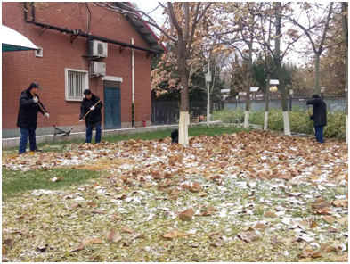 霜降過(guò)后,氣溫逐漸下降,綠化苗木開(kāi)始落葉,陸續(xù)進(jìn)入休眠期。為了做好冬季園林綠化的管護(hù)工作,嚴(yán)格落實(shí)防火等安全措施,排除各類(lèi)安全隱患。安排各項(xiàng)目值班人員加強(qiáng)巡查維護(hù),防火。每周定時(shí)集中清理園區(qū)落葉,及時(shí)進(jìn)行綠化垃圾清運(yùn),減少安全隱患。
