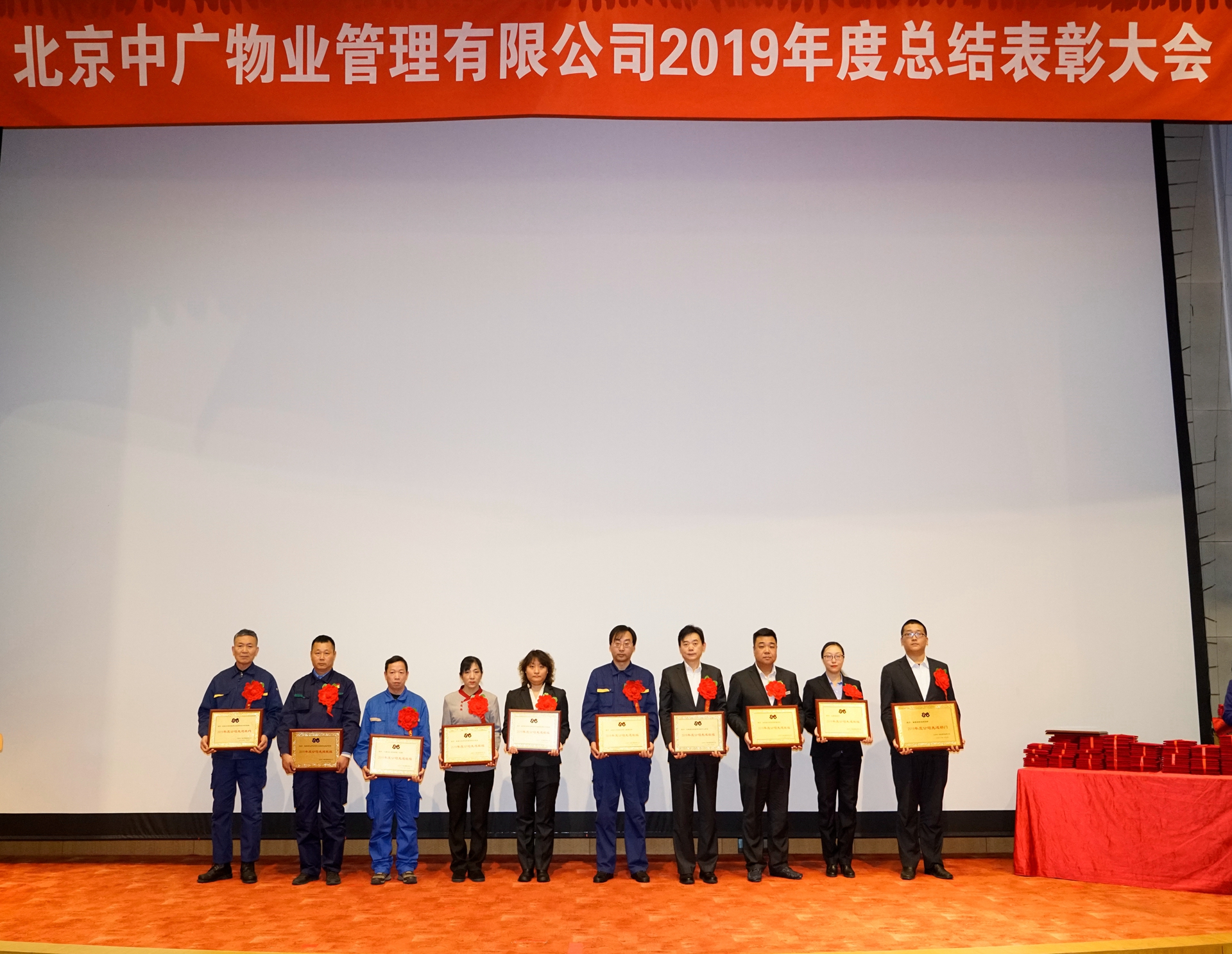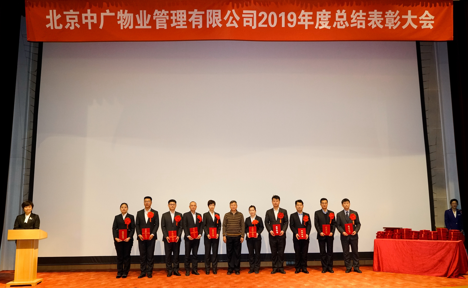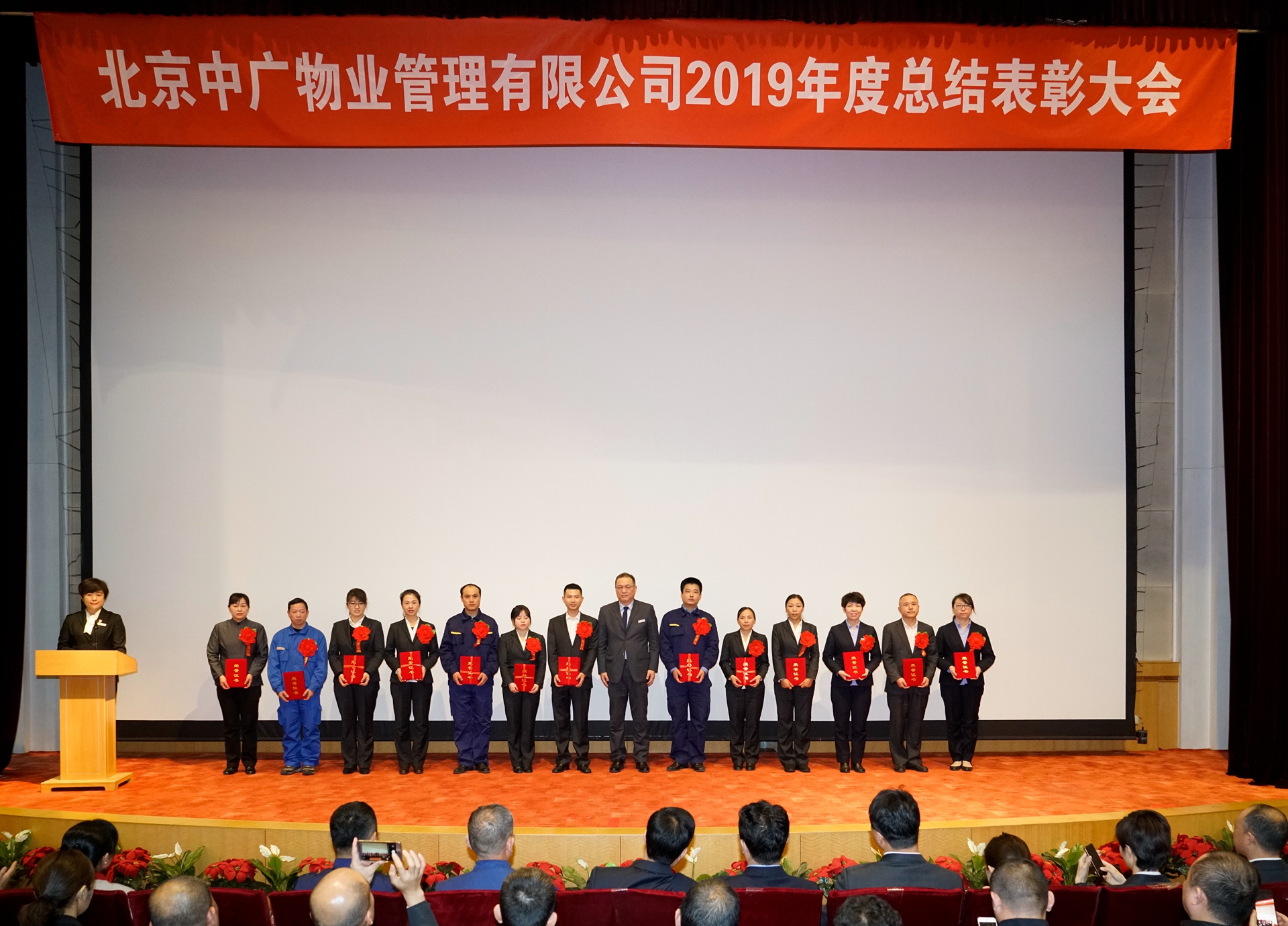 1月5日,中廣物業(yè)公司召開了2019年度總結(jié)表彰大會(huì)。公司股東方國家廣播電視總局機(jī)關(guān)服務(wù)局分黨組成員、副局長阮波,公司股東方國家廣播電視總局機(jī)關(guān)服務(wù)局物業(yè)管理部處長和慶芳,中國國際電視總公司中視實(shí)業(yè)集團(tuán)副總經(jīng)理陳維立,公司總經(jīng)理崔立新以及來自公司各職能部門、各項(xiàng)目部、園林綠化子公司、合肥分公司的三百多名員工代表參加了大會(huì)。