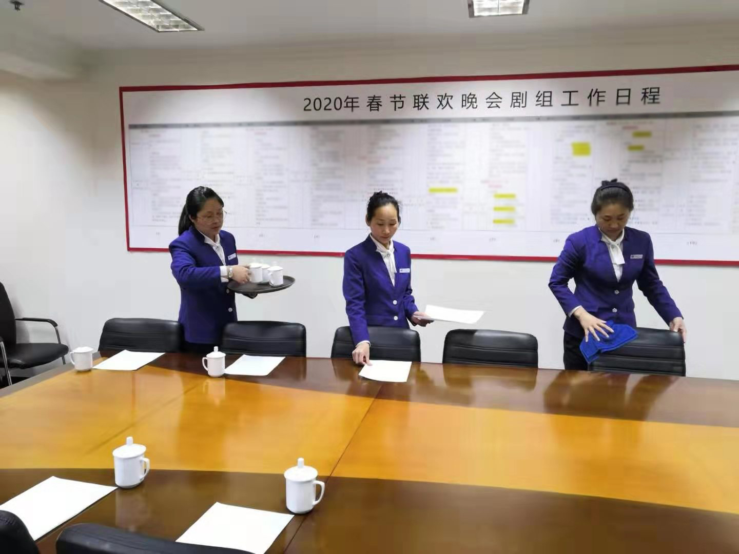 一年一度的春節(jié)晚會,是中央廣播電視總臺獻給全國人民的一份禮物,也是全球海內(nèi)外華人共享華夏傳統(tǒng)節(jié)日的時刻,為籌辦好這臺晚會,中央廣播電視總臺高度重視。中廣物業(yè)公司負責總臺復興路辦公區(qū)的環(huán)境衛(wèi)生工作以及春晚劇組所在辦公區(qū)域的服務工作,能夠服務于春晚,中廣物業(yè)公司深感責任重大。為保障春晚劇組有一個良好的工作環(huán)境,2019年4月,春晚劇組剛一進入,公司即成立了專項組織機構,負責對口接待服務春晚劇組,在長達半年的時間里,各項服務保障工作及時到位,為春晚劇組提供了滿意舒心的工作環(huán)境,受到春晚劇組的肯定。為配合春晚彩排活動,中廣物業(yè)公司央視復興路項目部全體人員放棄休息全力保障彩排活動,做到每次春晚彩排活動提前半天完成各大小演播室、審看間、記者間等區(qū)域的衛(wèi)生保潔工作,并對演員、觀眾活動區(qū)域進行不間斷巡視保潔,活動區(qū)域內(nèi)的每個衛(wèi)生間都有專人值守,保障為參加春晚彩排人員提供清潔衛(wèi)生的環(huán)境,直至春晚聯(lián)排活動結束。