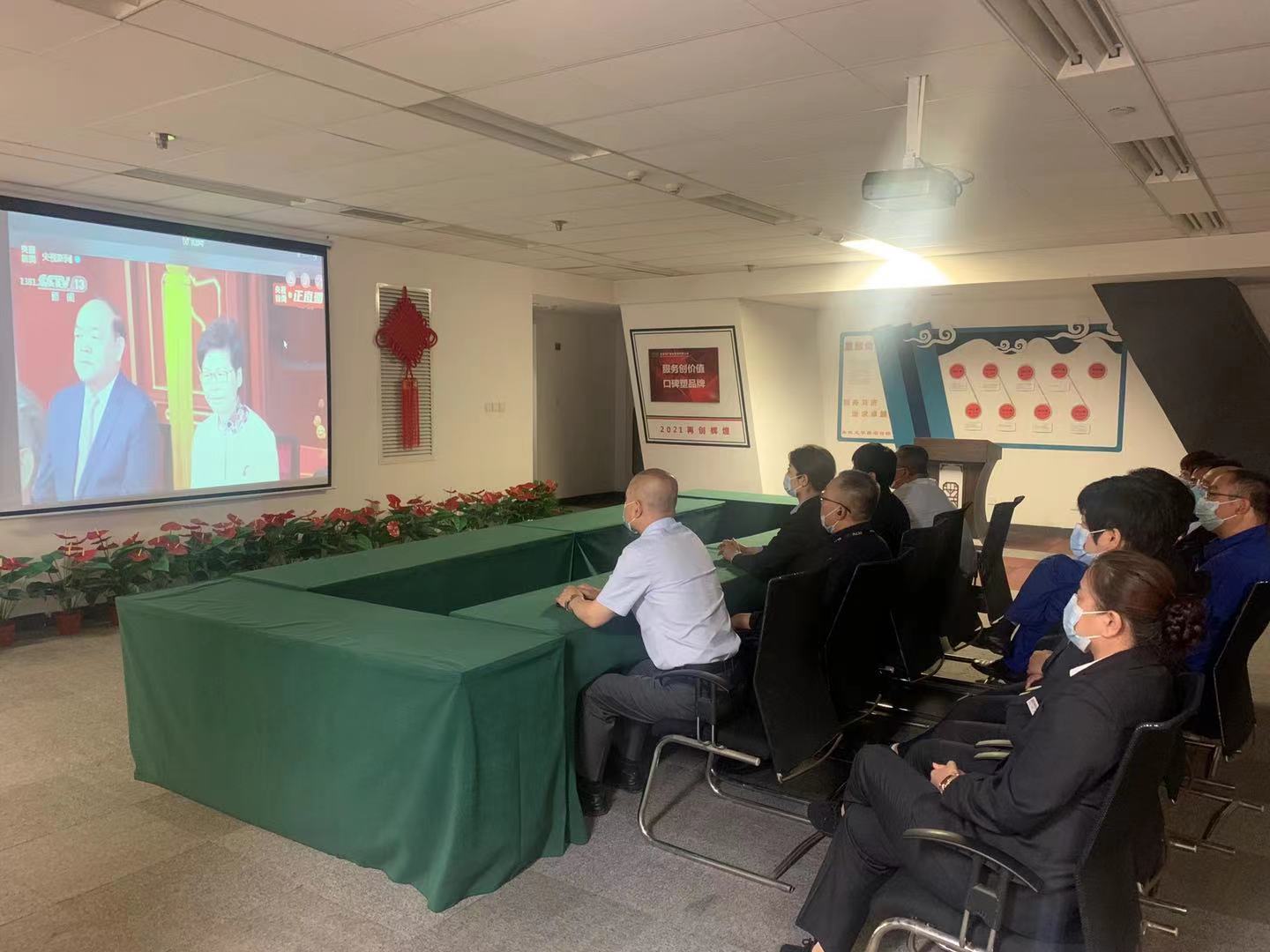 2021年7月1日上午8時,慶祝中國共產(chǎn)黨成立100周年大會在北京天安門廣場隆重舉行。中共中央總書記、國家主席、中央軍委主席習近平發(fā)表重要講話。中廣物業(yè)公司各部門、各項目組織黨員干部收看中國共產(chǎn)黨成立100周年慶祝大會現(xiàn)場直播,公司黨總支書記、總經(jīng)理崔立新及領導班子等成員在音像資料館會議室集中收看。