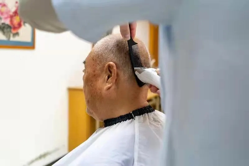 “五棵松項目員工大部分是在外漂泊的游子,疫情原因無法經(jīng)?;厝タ赐抑心赀~的父母,大家將對父母親人的思念之情轉(zhuǎn)化在便民養(yǎng)老各項服務(wù)工作中,這里的每一位老同志都是我們的家人?!被叵肫鸾荒甑谋忝耩B(yǎng)老服務(wù)開展情況,五棵松項目主管張書艷萬千思緒涌上心頭。自接到便民養(yǎng)老服務(wù)工作起,公司高度重視,有效利用整合現(xiàn)有資源,推出日常健康監(jiān)測服務(wù);在五棵松老干部活動站,定期開展優(yōu)惠理發(fā)服務(wù),并為行動不便的老同志提供上門服務(wù);開通中廣物業(yè)公司24小時應(yīng)急值守熱線等服務(wù),用心用情為老同志們辦實事、謀實惠。