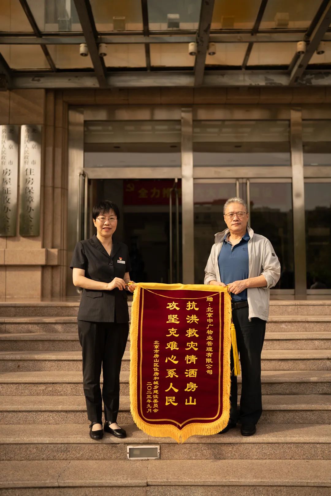 9月20日,北京市房山區(qū)住房和城鄉(xiāng)建設委員會召開抗洪救災表彰會,北物協(xié)艾會長向北京中廣物業(yè)管理有限公司授予“抗洪救災情灑房山 攻堅克難心系人民”錦旗,對公司全力支持房山區(qū)抗洪搶險工作予以表彰。