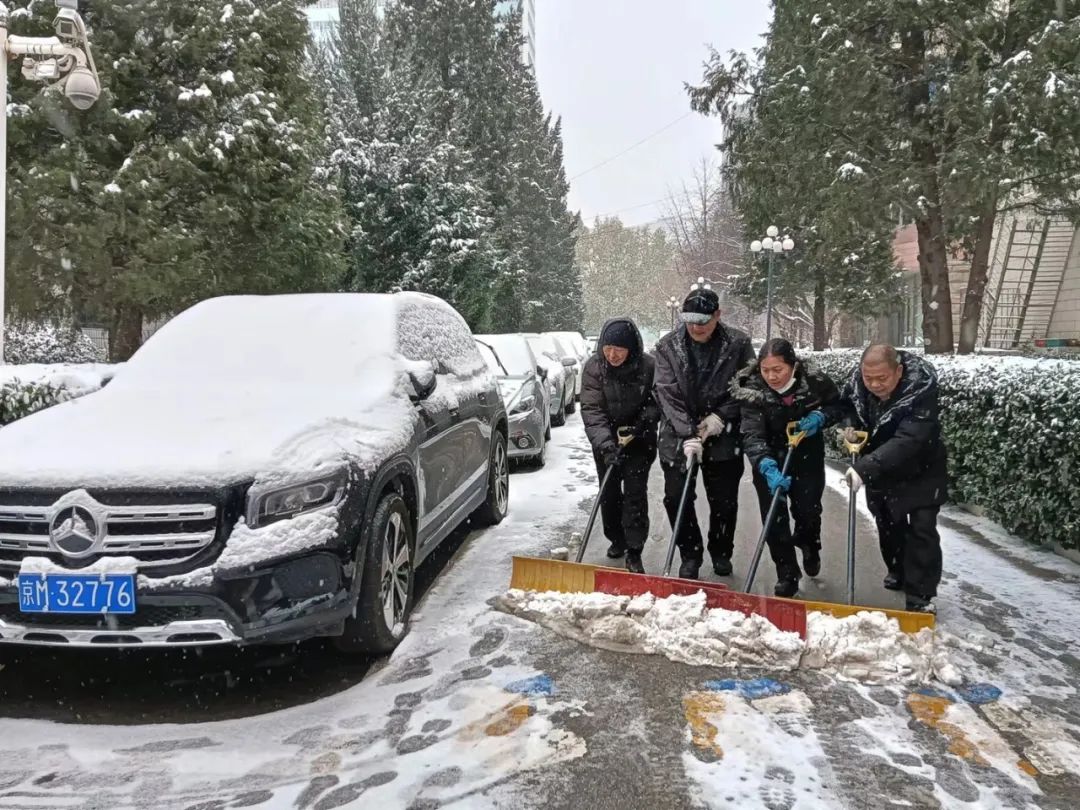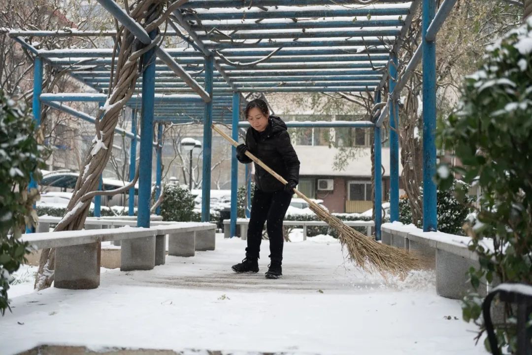 由于兩次降雪天氣間隔時間短、持續(xù)時間長,疊加效應(yīng)明顯。為最大限度地減少降雪天氣對業(yè)主出行造成的影響,公司各項(xiàng)目利用兩次降雪間歇期,合理調(diào)配人員,清點(diǎn)物資儲備,加強(qiáng)室外設(shè)施設(shè)備和室內(nèi)供暖系統(tǒng)巡視并做好防凍措施,對掃雪設(shè)備進(jìn)行維護(hù),全面做好掃雪鏟冰、供熱保障等應(yīng)對工作。降雪如期而至,迎著不斷飄落的雪花,中廣人在刺骨寒風(fēng)中揮帚清掃積雪,在冰天雪地里敲鏟清理結(jié)冰的身影遍布于轄區(qū)每一個角落,各項(xiàng)目按照“隨下隨清”的原則,采取先主后次,分段劃片等方式,確保轄區(qū)出入口、主干道無積雪、不結(jié)冰,保障業(yè)主出行安全。