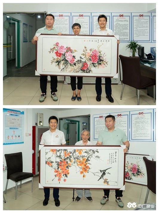 近日,業(yè)主在梵谷水郡居委會領(lǐng)導(dǎo)陪同下,將兩幅親筆畫作送到北京中廣物業(yè)管理有限公司梵谷水郡項目部,感謝公司物業(yè)團隊提升服務(wù)品質(zhì)帶來日新月異的變化和公司員工的辛勤付出,畫作中“牡丹、柿子”躍然紙上,寓意“吉祥好運、事事如意”,期望物業(yè)工作越來越好。公司領(lǐng)導(dǎo)代表公司接收畫作并感謝業(yè)主對公司物業(yè)服務(wù)工作的肯定。