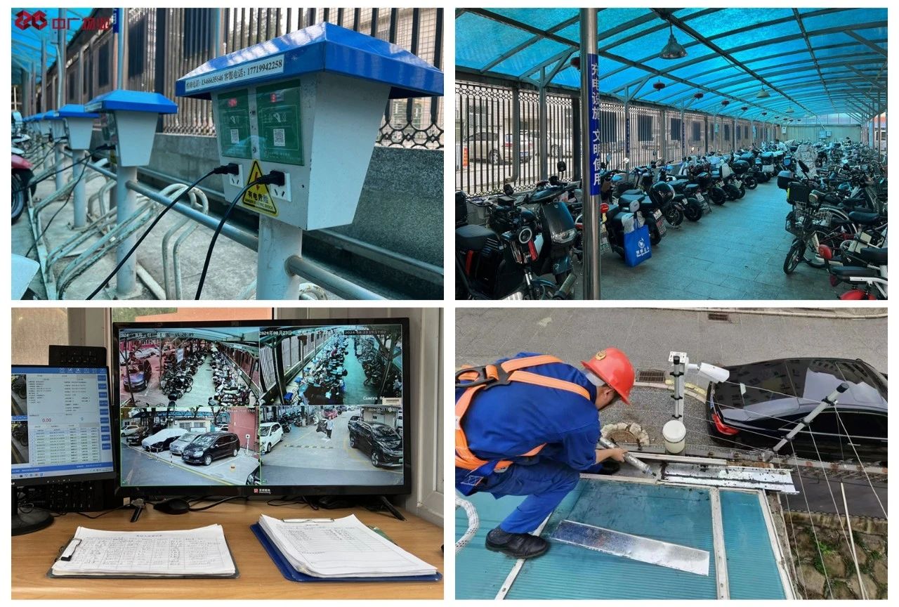 彩電小區(qū)建成于上世紀80年代,業(yè)主400余戶,配套設(shè)施日趨陳舊老化,充電設(shè)施使用頻次較高,增加了消防安全管理上的難度。彩電項目積極與社區(qū)溝通聯(lián)系,經(jīng)過一系列的論證和規(guī)劃,增裝15個電動自行車充電樁、30個充電口,滿足臺屬職工及業(yè)主的充電需求。為有效防范電動自行車火災事故,項目將安全工作放在首位,樹立“人人都是消防員”的責任意識,加強弱勢時段充電樁區(qū)域的安全檢查和巡視,發(fā)現(xiàn)違規(guī)充電、亂停亂放等現(xiàn)象及時制止,嚴禁占用消防通道,引導業(yè)主有序停車。同時項目在電動自行車停放、充電場所安裝24小時視頻監(jiān)控系統(tǒng),針對電動自行車起火燃燒特點,配置水基型滅火器、“消防彈”噴灑式滅火裝置、煙感報警裝置和遠程報警監(jiān)測控制裝置,實現(xiàn)人防、物防、技防互補。在今年汛期來臨前,項目對電動自行車棚上方的排水槽進行清理,保證電動自行車停放充電場地周圍無可燃物,并利用施工廢舊材料延長排水槽,避免因雨水滯留而可能導致的充電設(shè)施損壞或安全隱患。