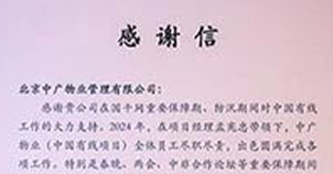 中國有線致信感謝中廣物業(yè)公司為重保期安全保衛(wèi)、后勤支持提供重要保障...